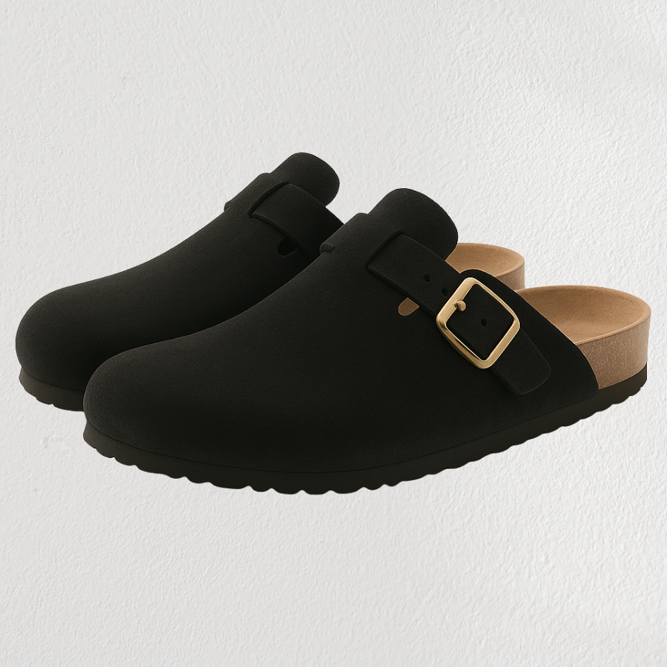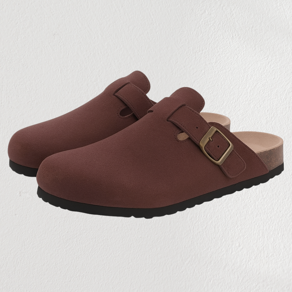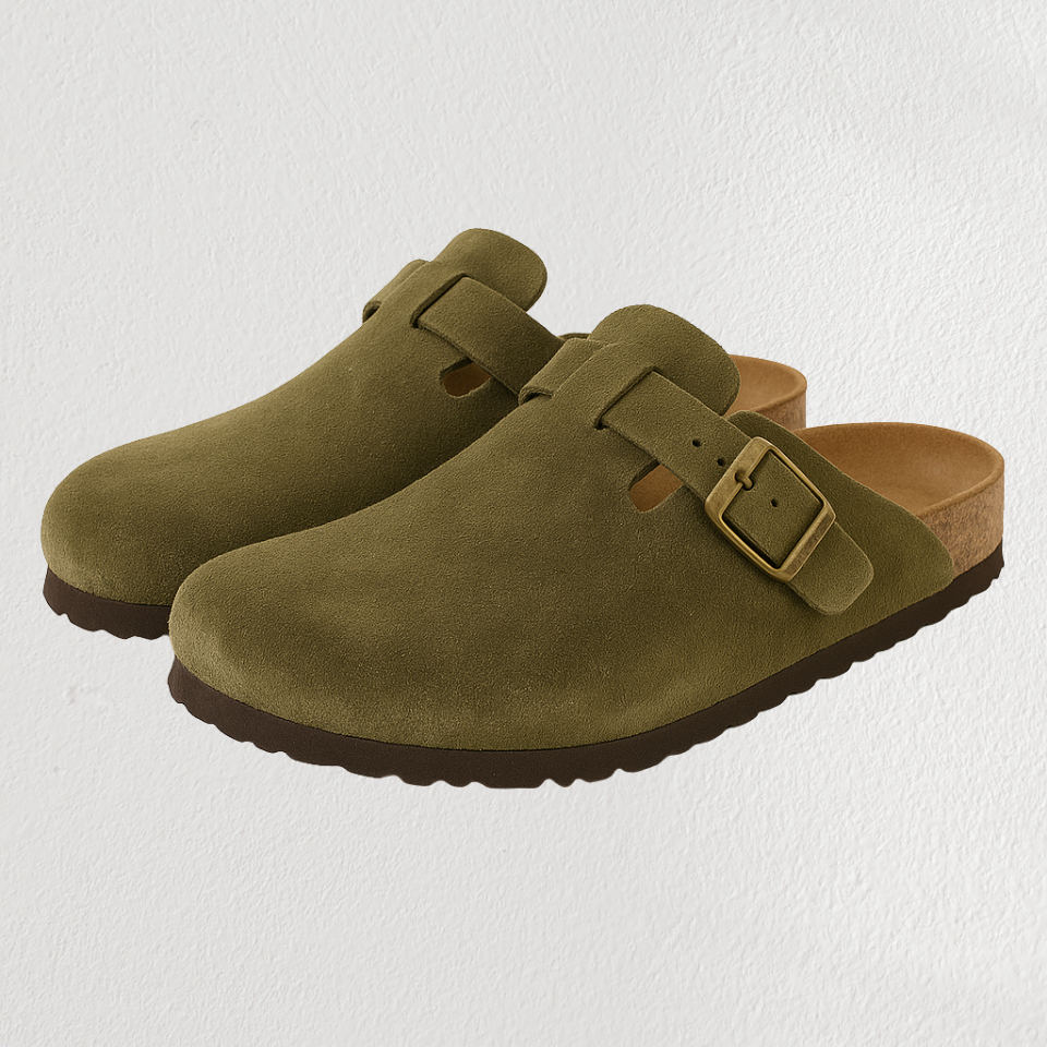 Het hoogwaardige veganistische suède bovenwerk zorgt voor duurzaamheid en zachtheid, terwijl het natuurlijke kurken voetbed zich geleidelijk aanpast aan de unieke vorm van je voet.