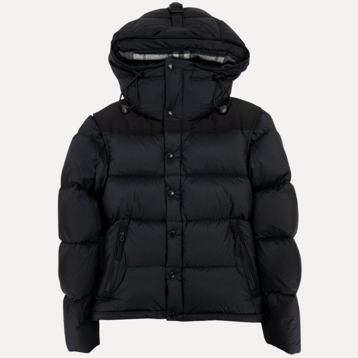 Warme en stijlvolle donsjas die zich aanpast aan uw wensen. De capuchon heeft een gestreepte binnenkant voor een discreet maar trendy detail. De mouwen zijn afneembaar, zodat u de jas afhankelijk van het weer of uw stijl ook mouwloos kunt dragen.